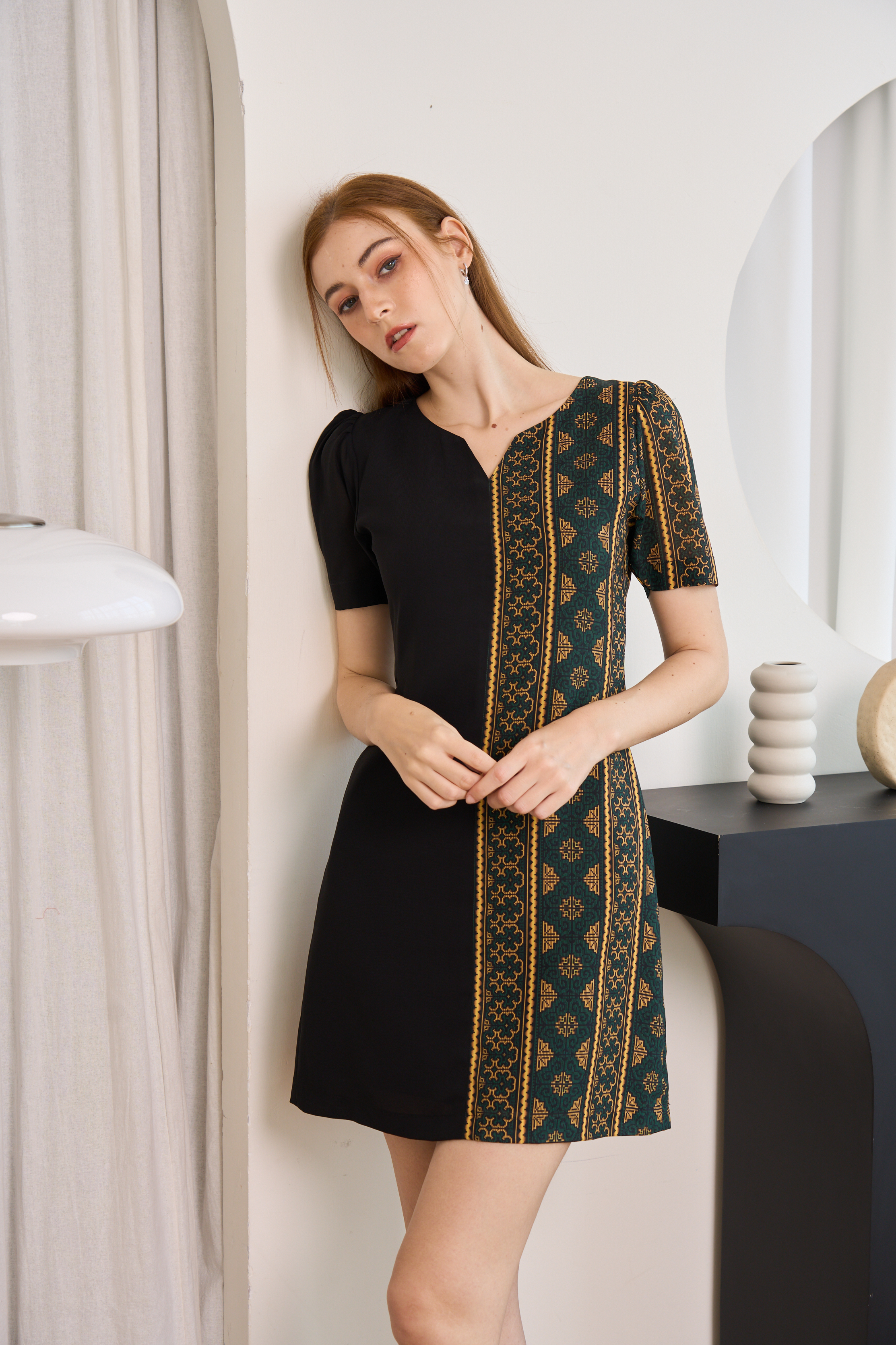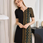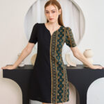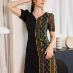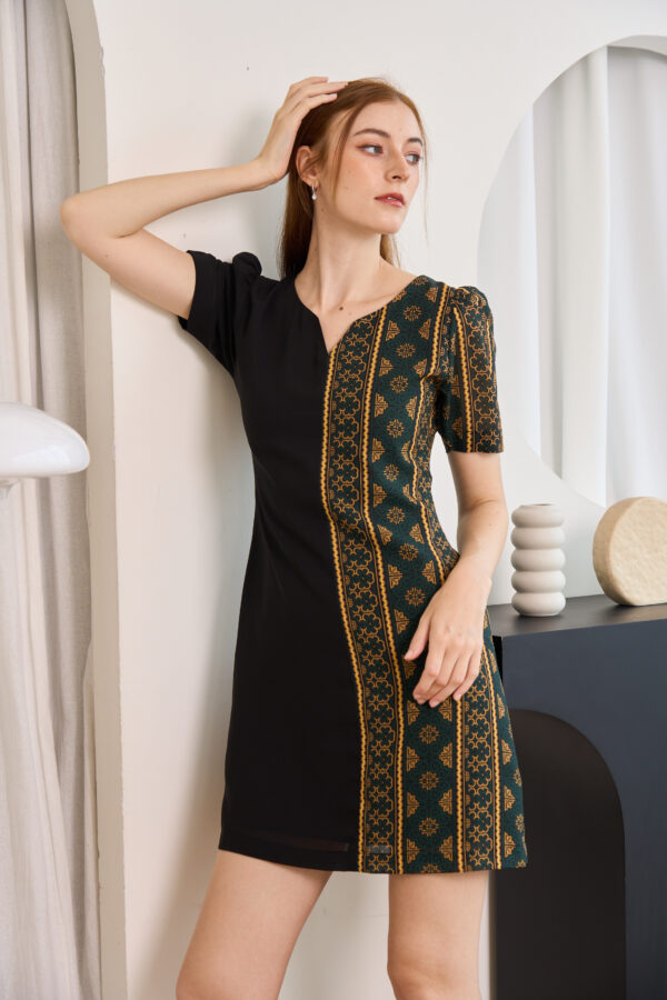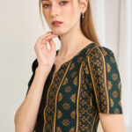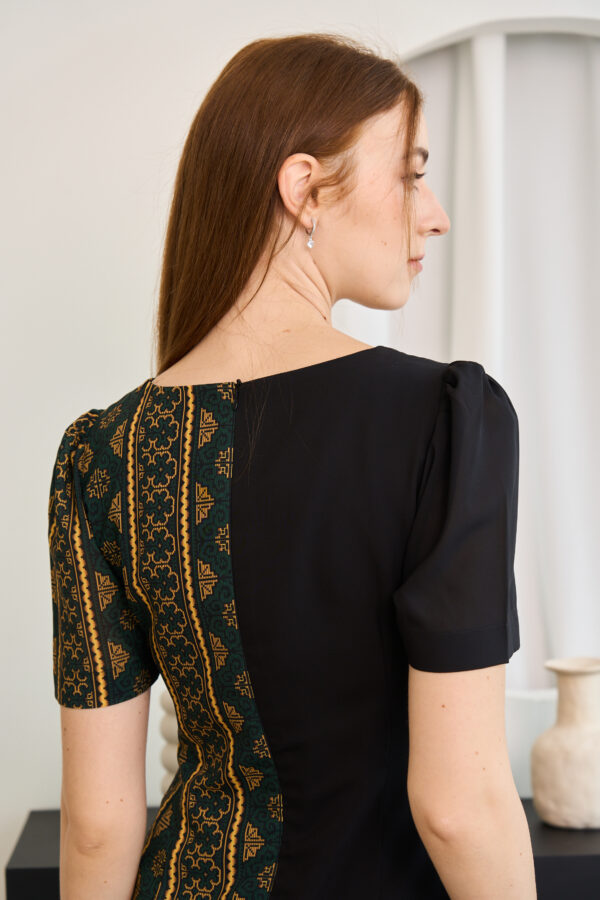 Printed Gold with deep Green color combining with Black into a strong elegant color with the confident design for every woman who needs to feel attractive with herself and others. Bring back your confidence again with this unique Hmong printed dress in every occasion that suits. The fabric of this dress is used by Chiffon. The printed pattern is very uniquely designed by our shop.
